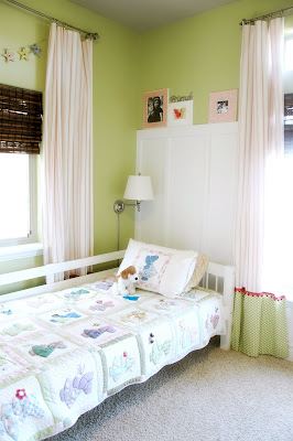 I went with the pink and green scheme partially because of these "Sunbonnet Sue" quilts that my mom made for my girls many moons ago.
